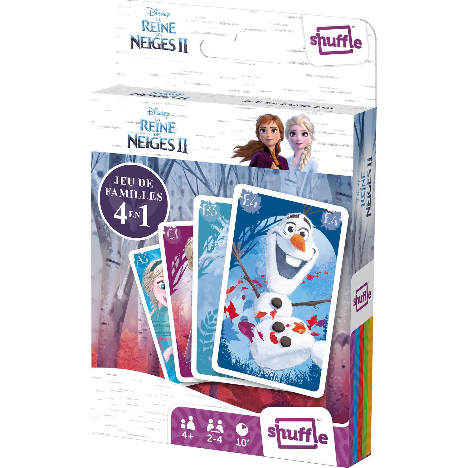 Retrouvez tous les personnages du film La Reine des Neiges 2 dans ce jeu de cartes. Découvrez 4 règles de jeux différentes pour seulement 1 jeu de cartes : jeu de 7 Familles, jeu de paires, jeu d'action et jeu de Batailles.