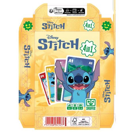 4 jeux en 1 : Découvrez un jeu de 7 familles revisité, un jeu de bataille, un jeu d'action et un jeu de mémoire, tout dans un même jeu de cartes ! Thème exclusif Stitch : Plongez dans l'univers coloré et espiègle de Stitch avec des illustrations fidèles à la licence Disney 7 familles uniques : Constituez des familles représentant différents aspects de l'univers de Stitch : ohana, aventures galactiques, moments hawaïens, et bien plus. Idéal pour tous les âges : À partir de 4 ans, pour 2 joueurs ou plus, parfait pour des moments de partage en famille ou entre amis. Développe des compétences : Stimule la mémoire, la stratégie et favorise l'apprentissage des valeurs d'entraide et de convivialité. Compact et pratique : Emportez-le partout grâce à son format facile à transporter pour des parties improvisées.