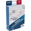 Partager votre plaisir de jouer avec le jeu de Yam's ! Aurez-vous les yeux plus gros que le ventre ? Prenez tous les dés en main avec assurance, secouez fort vos poignets (il paraît que plus les dés sont bien mélangés, plus les enzymes de chance s'activent), embrassez vos mains... et lancez tous les dés ! Alors, on garde les 2 dés de 5 et on relance. Bon finalement, on garde les 3 dés de 6 ou on tente le Yams ? Ah dommage. Chaque joueur bénéficie de 3 lancers de dé(s) pour marquer le plus de points possibles selon les 13 combinaisons proposées dans le bloc de score : Carré, Full, petite et grande Suite... Un jeu de hasard simple et familial, qui facilite également l'apprentissage des calculs. Son format voyage est idéal pour emmener votre jeu partout, en toutes occasions. Dès 6 ans, 1 à 6 joueurs. Contient 5 dés blancs de 18mm avec marquage noir, 2 blocs de score Yams (40 pages par bloc) et un pochon en tissu blanc pour le rangement.