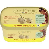 Crème glacée au rhum des Antilles françaises (2%) avec arômes naturels et des raisins macérés au rhum (10%). Il s'agit d'une crème glacée parfum rhum des Antilles françaises et raisins macérés au rhum. Elle est fabriquée en France avec la crème fraîche. Elle est proposée dans un nouveau bac en carton recyclable. Expert culinaire depuis sa création en France en 1978, Carte d'Or crée des recettes de crèmes glacées et de sorbets aussi originales que savoureuses, à partir d'ingrédients de qualité. Riche de 40 ans d'authenticité, de créativité et de passion, Carte d’or innove chaque année en développant de nouvelles gammes et des parfums originaux. Carte d’Or se déguste à toutes les occasions : en famille à la fin d’un repas, au goûter pour une pause gourmande ou encore pour les fêtes de fin d’année avec nos bûches. Carte d’Or vous donne de l’inspiration pour créer des desserts délicieux, simples ou plus sophistiqués, grâce à ses nombreuses recettes. Avec Carte d'Or, votre dessert devient un moment incontournable du repas. Pour réaliser de belles boules de glace facilement : Utilisez de préférence une cuillère spéciale glaces, et n'hésitez pas à la tremper dans de l’eau chaude régulièrement. Une fois les boules de glaces réalisées, rangez votre bac de glace dans le congélateur afin d’éviter que la glace ne fonde et que des petits cristaux de glace se forment. Suivez notre actualité sur notre site internet : https://www.mavieencouleurs.fr/marques/cartedor De nombreux parfums à découvrir avec Carte d'Or, dans un format bac de glace ou dans un format pot de glace !