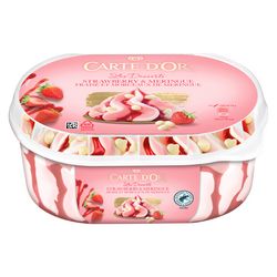 La Glace Fraise Morceaux de Meringue Carte d'Or allie à merveille la douceur de la glace vanille et de la glace fraise avec le croquant de délicieux morceaux de meringue enrobés de chocolat blanc. Cette glace onctueuse et gourmande est fabriquée en France avec du lait de nos régions. Son bac au format de 825 ml vous permet de réaliser jusqu'à environ 16 boules à déguster selon vos envies. Pensez à ranger rapidement votre bac de glace au congélateur après service, afin de préserver la saveur et la texture de vos glaces. Carte d'Or Fraise Morceaux de Meringue, un parfum unique pour toutes les occasions ! Pour les amateurs de glace à la vanille et de glace au chocolat, découvrez également Carte d'Or Crème Glacée Vanille de Madagascar et Carte d'Or Crème Glacée Chocolat Noir. Expert culinaire depuis sa création en France en 1978, Carte d'Or imagine des recettes de crèmes glacées et de sorbets aussi originales que savoureuses, à partir d'ingrédients de qualité. Riche de 40 ans d'authenticité, de créativité et de passion, Carte d'Or innove chaque année en développant de nouvelles gammes et des parfums originaux. Découvrez aussi notre gamme de crèmes glacées avec Carte d'Or Vanille de Madagascar, notre sorbet plein fruit Carte d'Or Citron ainsi que notre gamme Carte d'Or Façon Yaourt.