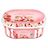 Glace vanille et glace à la fraise aromatisée, avec une sauce fraise aromatisée (18%) et des morceaux de meringues enrobées de chocolat blanc en décor (2,5%).