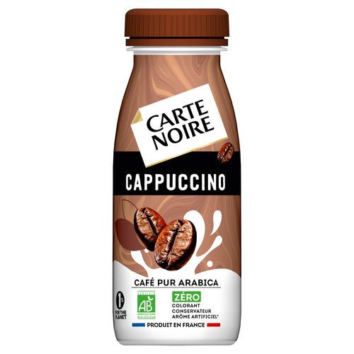 Ingrédients : LAIT demi-écrémé* 94%, sucre de canne* 4%, café soluble pur arabica* 1%, cacao maigre en poudre* 0,3%, correcteurs d'acidité: citrates de sodium, carbonate acide de sodium.