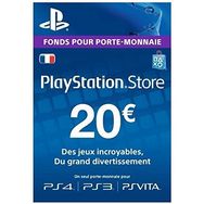 Fonds pour porte-monnaie virtuel Playstation Store d'un montant de 20€, valable pour des jeux et contenus PS4, PS3 et PS Vita