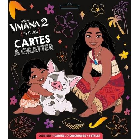 En savoir +Révèle l'artiste qui est en toi ! Avec le stylet, gratte les silhouettes de tes 7 cartes et dévoile les magnifiques couleurs qui donneront vie à tes personnages préférés du film Vaiana 2.
