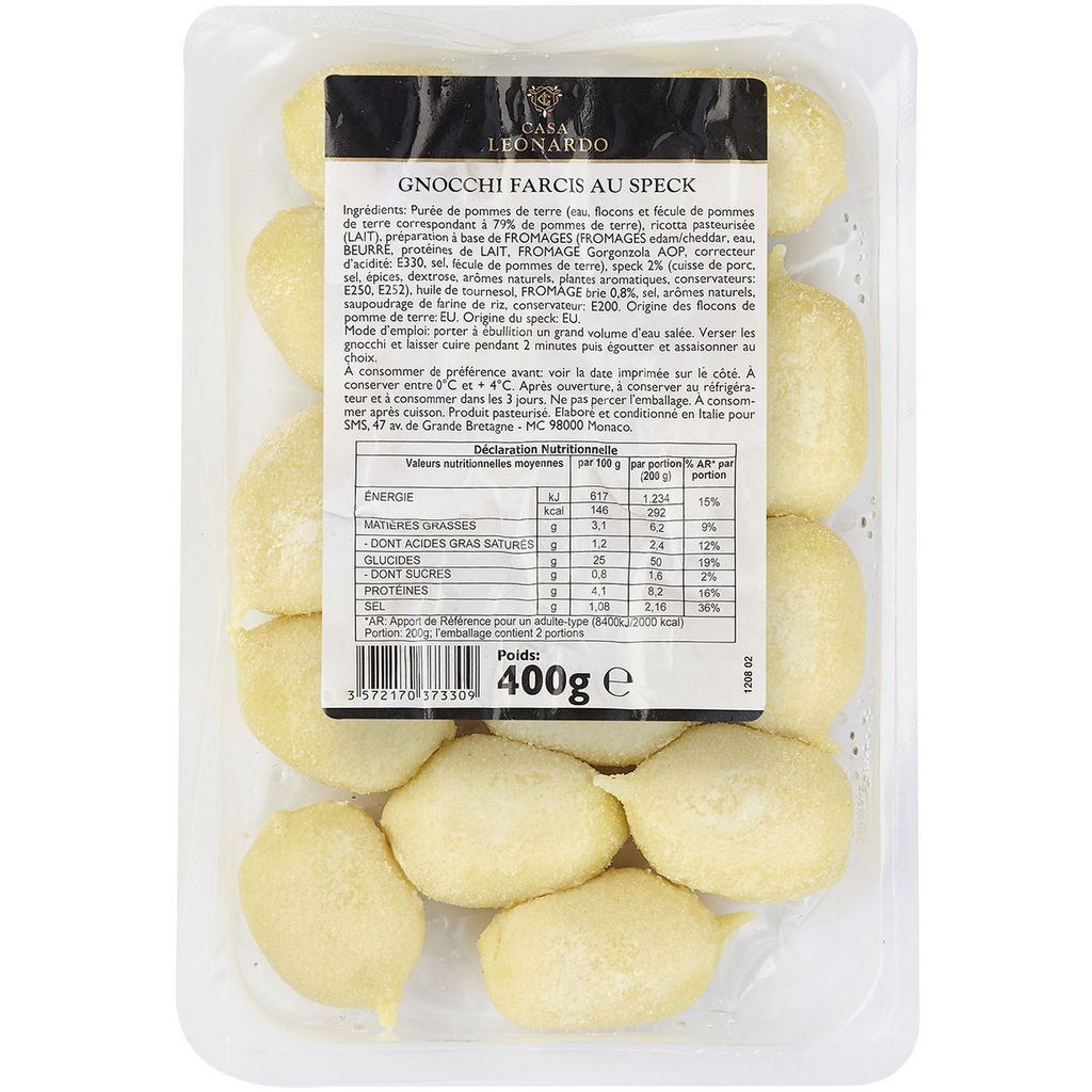 Barquette de 400g de gnocchi farcis au speck. Gnocchi farcis au speck