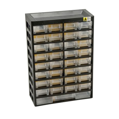 Sa structure plastique le rend adapté à des espaces humides. Possibilité de compartimenter l'intérieur des tiroirs avec les 21 séparateurs amovibles.Couleur: NoirEmboîtable: NonFixation murale possible: OuiAvec poignée: NonMatière principale: PlastiqueMatière des tiroirs: PolypropylèneHauteur (en cm