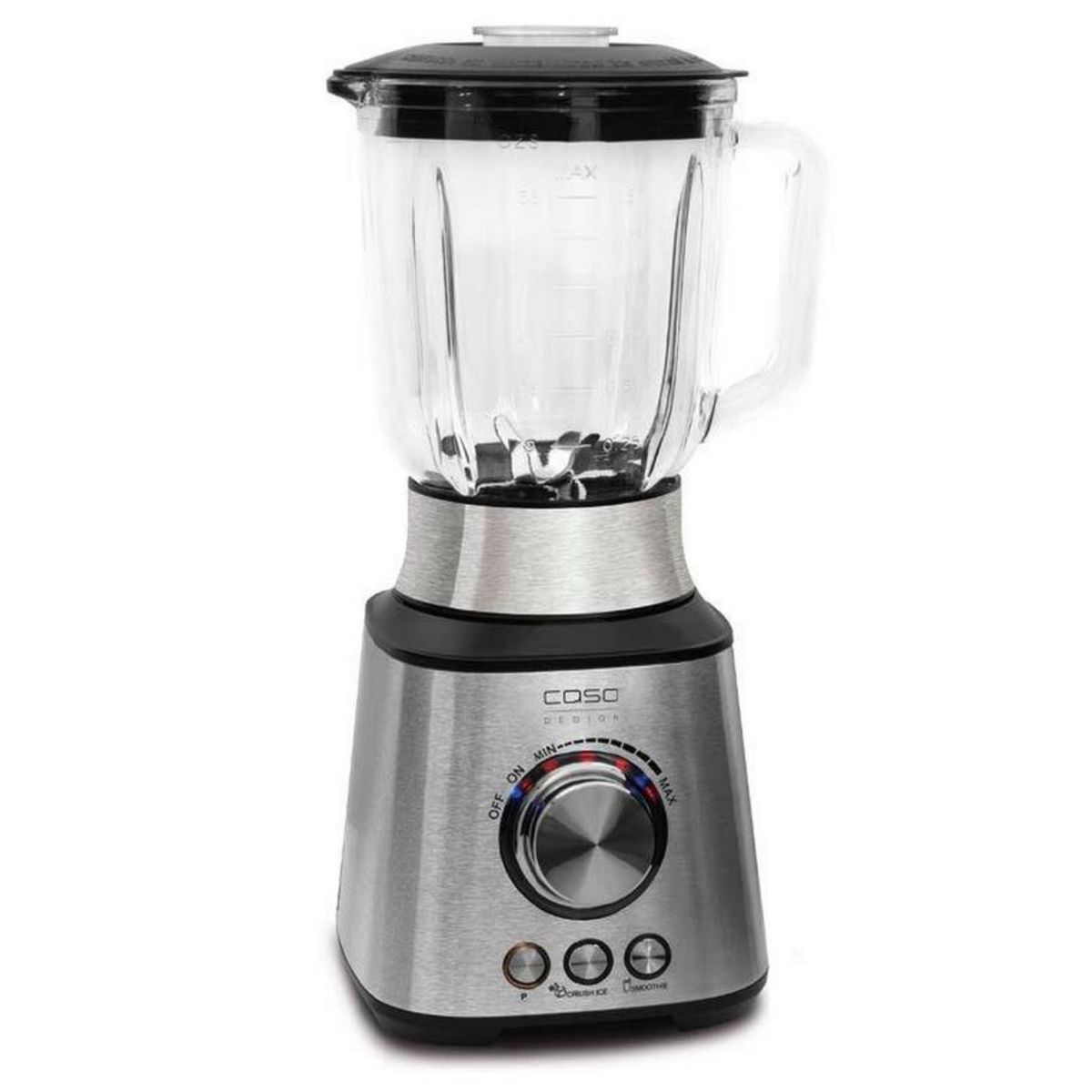 Caso 3617 Blender multifonctions MX1000 Caso 3617 doté d'un moteur puissant de 1000 Watts, couteau à 8 lames en inox. Idéal pour la preparation des Smoothies, milkshakes, frappes? Fonction Mix (manuelle par niveau, programmable). Fonction Smoothie (14.000 T/Min). Fonction Glace pilée (env 9.500 T/Min). Fonction Pulse (jusqu?à 17.000 U/Min). Bouton de réglagle de la vitesse avec affichage LED. Bol en verre très resistant supportant une temperature jusqu?à 80°C. Nettoyage facile grâce à sa lame démontable. Protection contre la surchauffe et double verrou de sécurité.