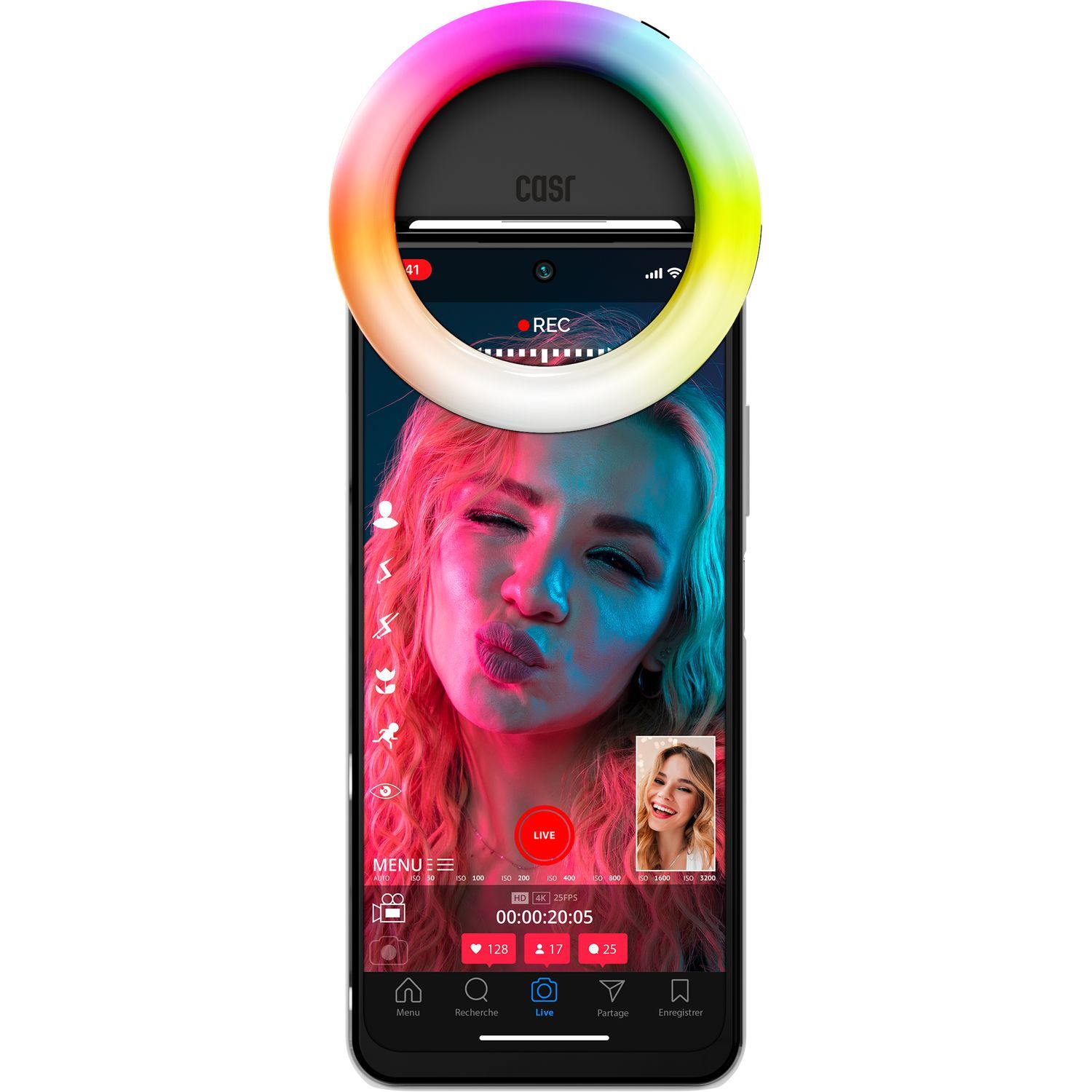 Clip universel Led Blanches et Colorés - Support smartphone pliable - Rechargeable USB - 36 LED - Capacité batterie 60 mAh - Ambiances colorées