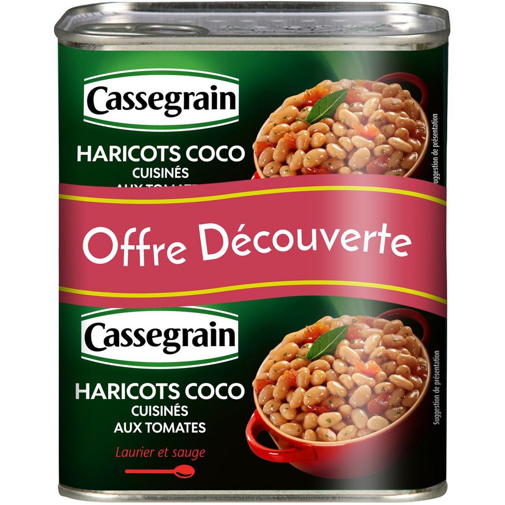 Haricots blancs cuisinés aux tomates Découvrez le fondant des haricots coco Cassegrain soigneusement sélectionnés