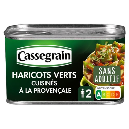 Haricots verts plats coupés cuisinés aux tomates et aux oignons à l'huile d'olive vierge extra 2%