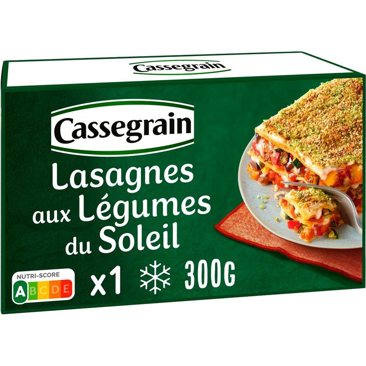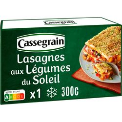 LAIT réhydraté (eau, LAIT écrémé en poudre), légumes 19% (courgettes 8,7%, aubergines grillées 6,6%, poivrons jaunes et rouges en proportion variable 2,4%, oignons), purée de tomate mi-réduite 15%, pâtes 12,7% (semoule de BLE dur, OEUF, épinards 1,5%), eau, MOZZARELLA 3,1% (LAIT de vache, sel, ferments lactiques, coagulant microbien), farine de BLÉ, double concentré de tomates 1,8%, CHAPELURE (farine de BLÉ, eau, huile de tournesol, LAIT écrémé, levure, sucre, sel), huile de tournesol, mélange de FROMAGES à pâte dure râpés 0,9% (LAIT, sel, coagulant microbien), huile d'olive, BEURRE, persil 0,6%, sel, thym, basilic, laurier, muscade.