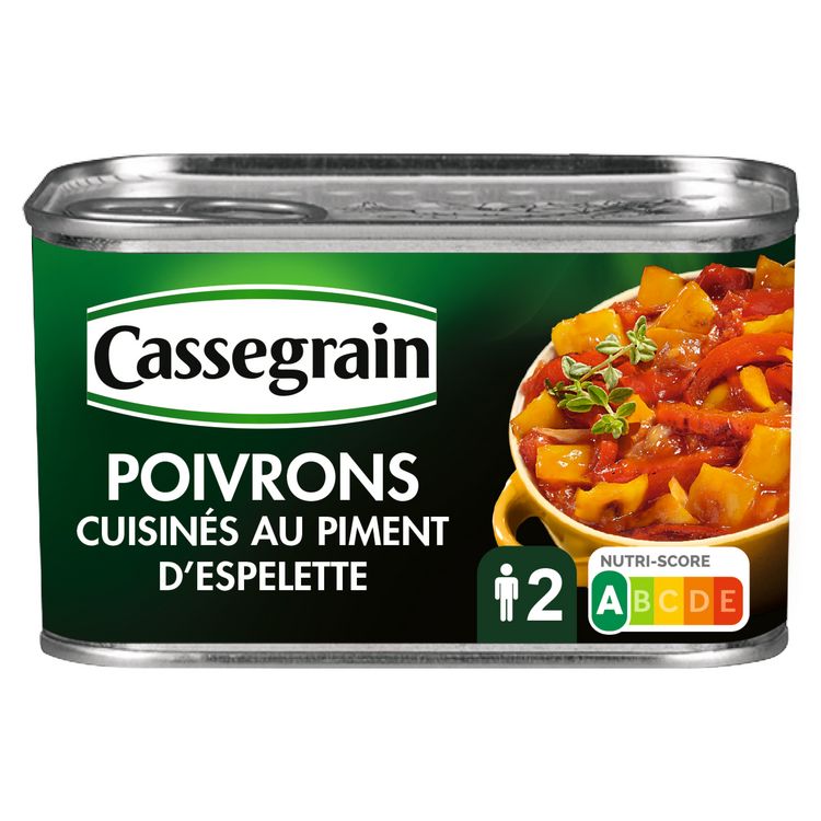 Poivrons jaunes et rouges cuisinés, huile d'olive vierge extra 3.5%, piment d'Espelette