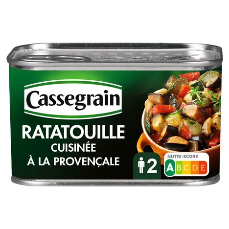 Ingrédients : Ingrédients:Dés d'aubergines préfrites 25% (aubergines 22%, huile de tournesol), dès de courgettes 25%, purée de tomates mi-réduite 21%, oignons en dès 13%, poivrons rouges en dès 8%, double concentré de tomate 3%, huile d'olive vierge extra 1,5%, sucre 1,3%, sel, ail, jus concentré de citron, farine de bolditalicBLE/bolditalic, thym 0.1%.