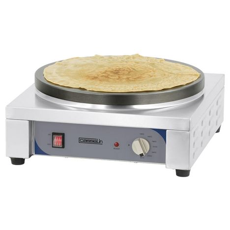 Casselin CCC40EP Les crêpières Casselin sont montées sur châssis en inox et dotées d'épaisses plaques en fonte avec un usinage ultra fin. Il existe 9 modèles de crêpières, simple ou double, 35 ou 40 cm de diamètre.