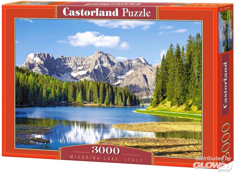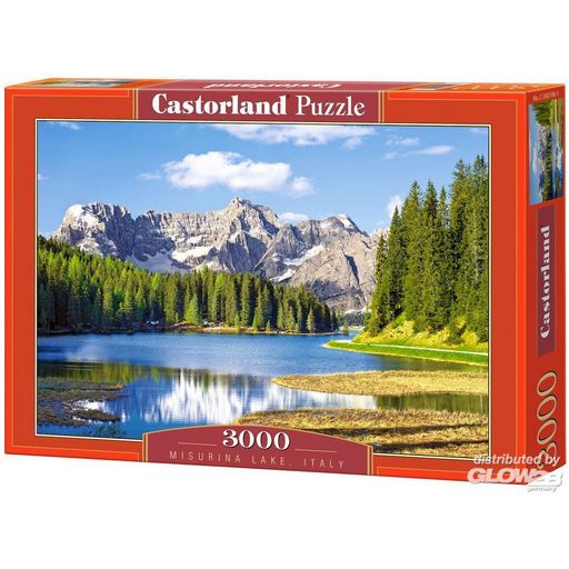 Les pics enneigés et les sapins verdoyants se reflètent dans les eaux du lac de Misurina, en Italie.Un puzzle de 3000 pièces sur le thème des montagnes.Dimensions du puzzle assemblé : 92 x 68 cm. Age minimum : 15 ans