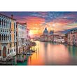 Découvrez une somptueuse vue du Grand Canal de Venise au crépuscule. A cette heure de la journée, toutes les gondoles ont retrouvé leurs amarres, ce qui permet de mieux apprécier les superbes jeux de lumière que le soleil couchant crée à la surface de l'eau. A l'arrière-plan, nous reconnaissons la B