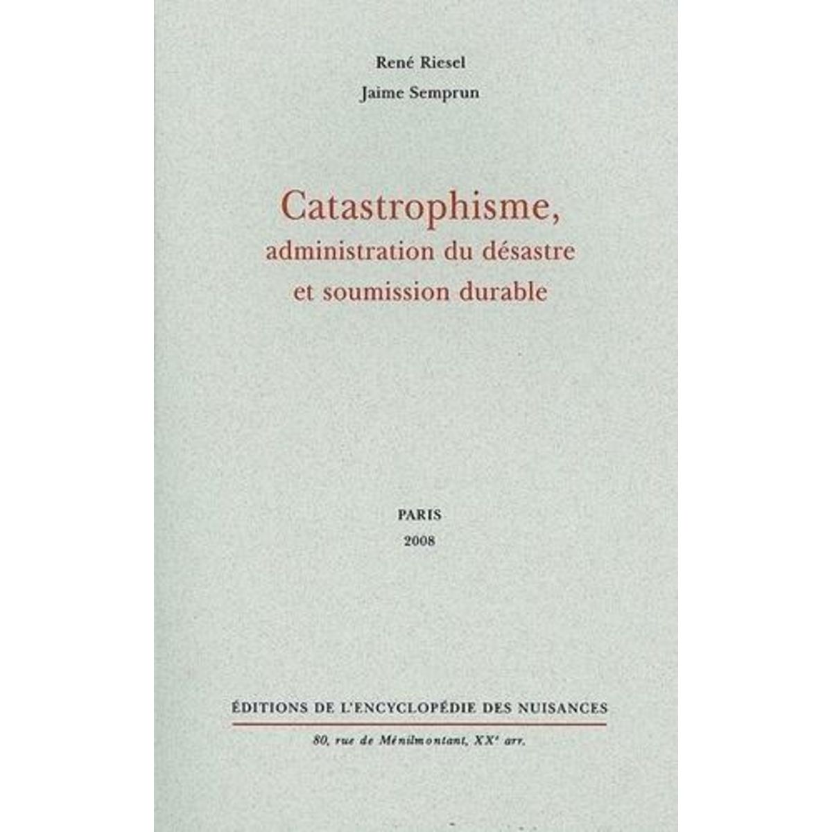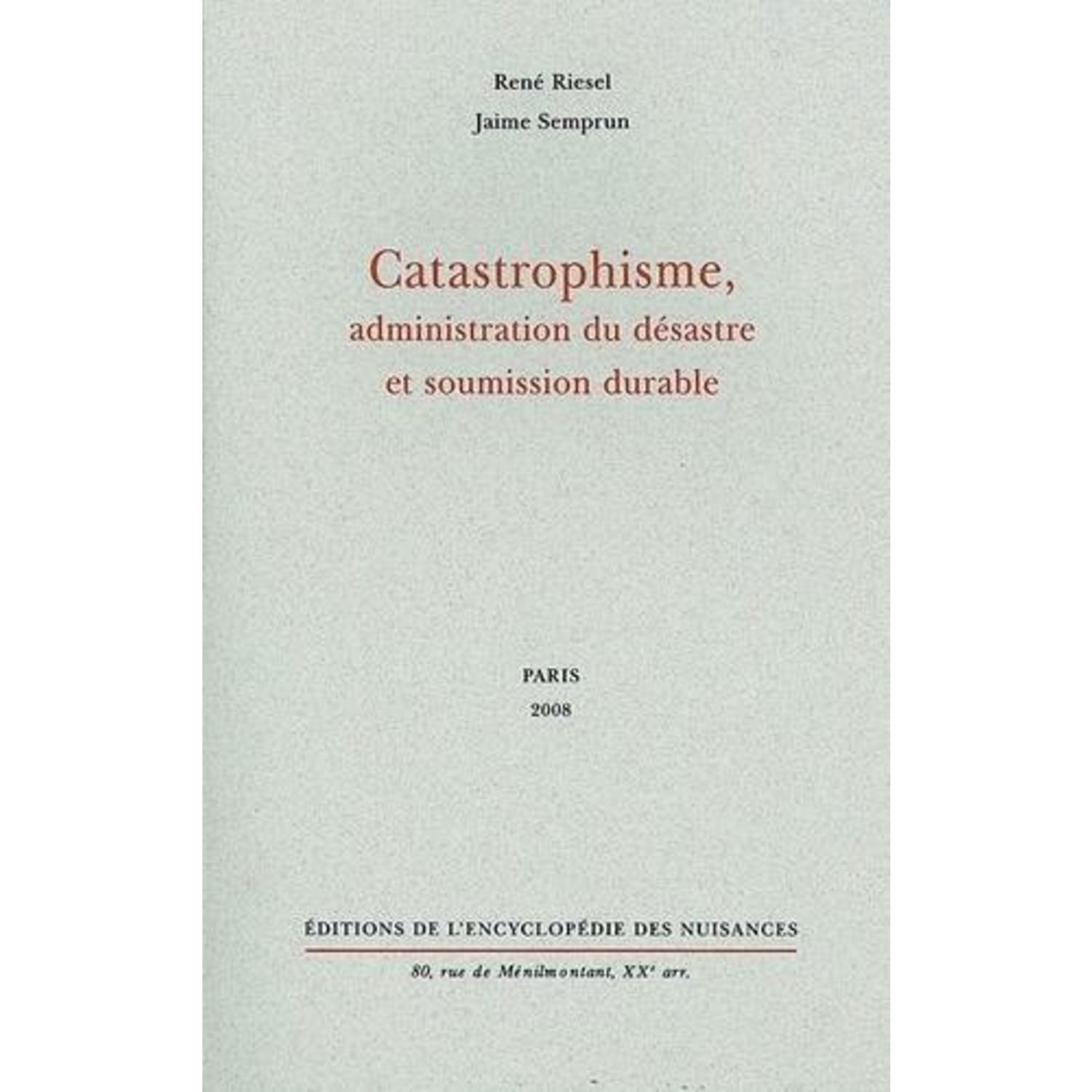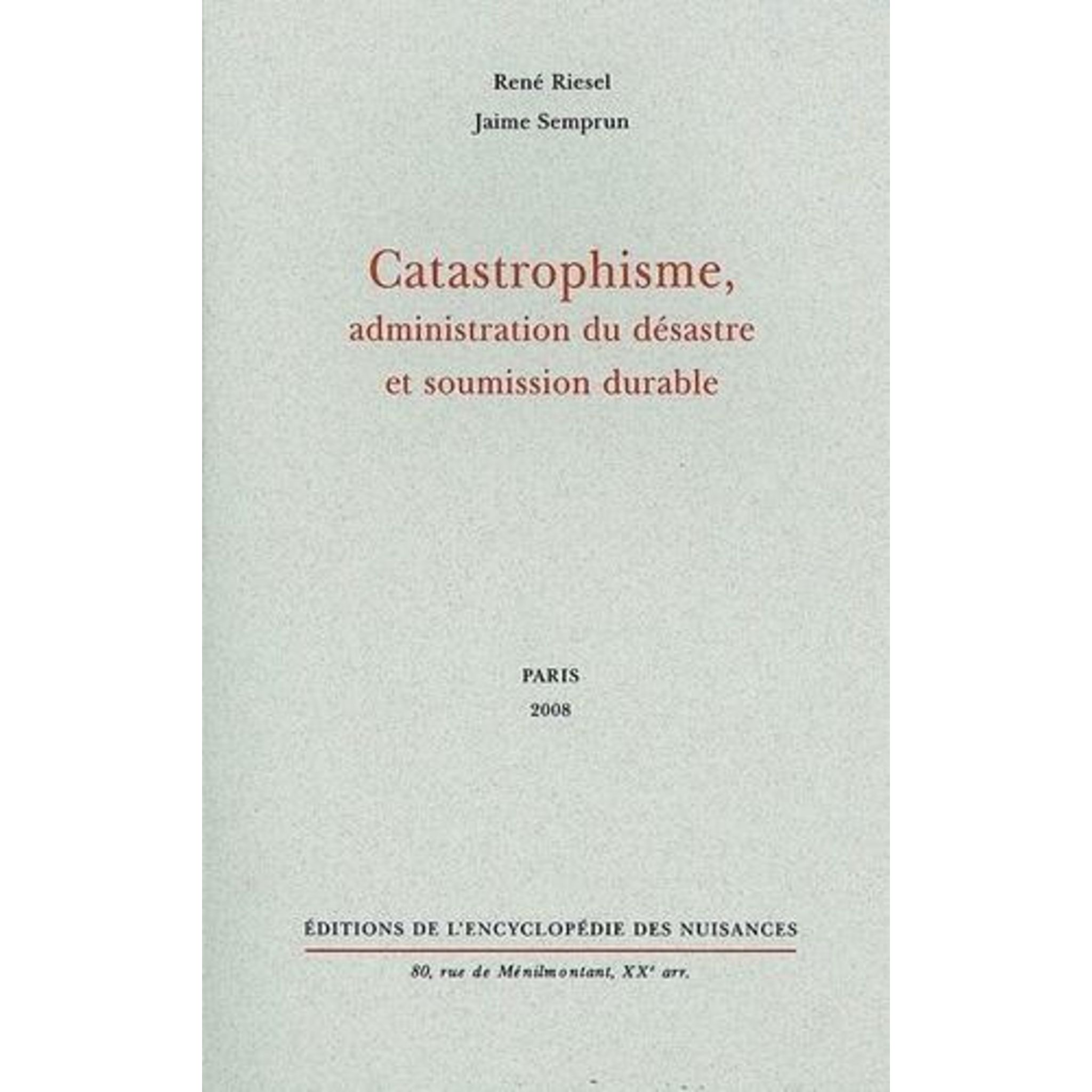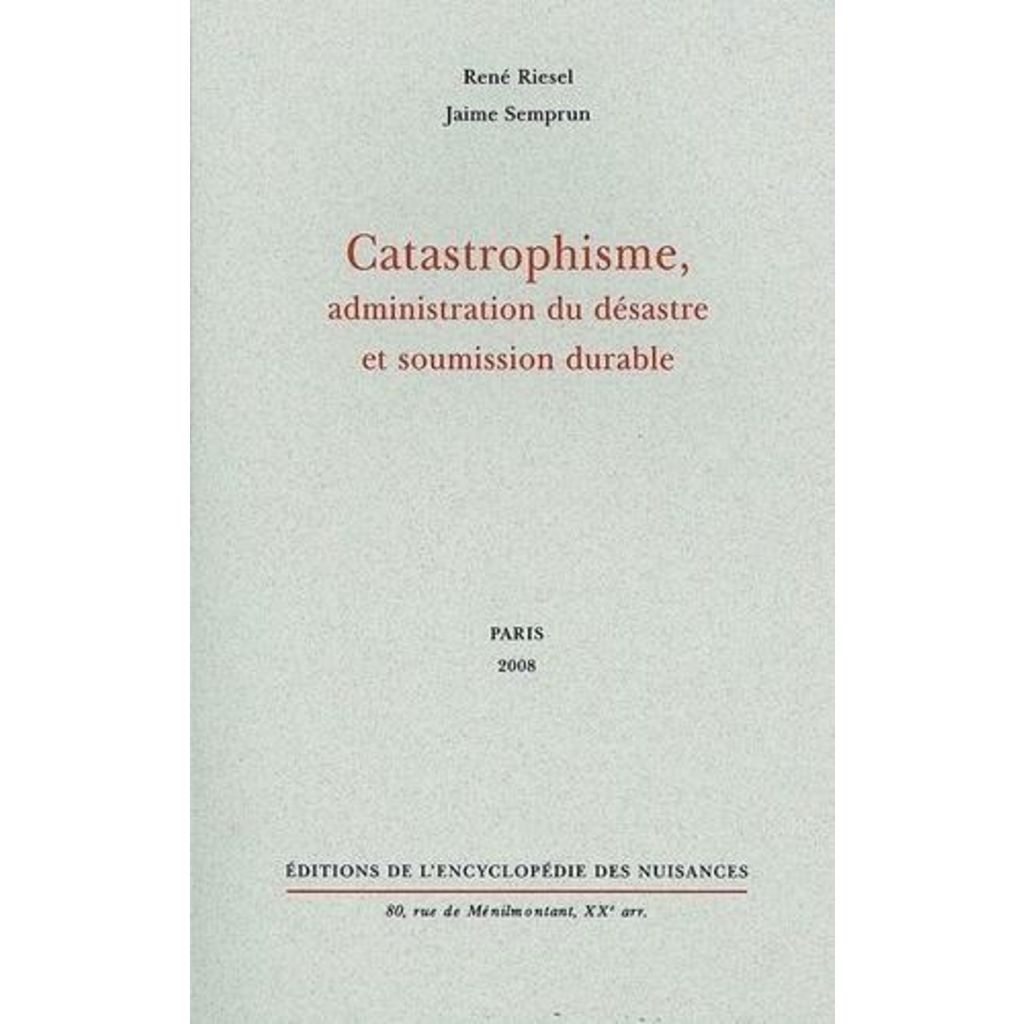 CATASTROPHISME, ADMINISTRATION DU DESASTRE ET SOUMISSION DURABLE, Riesel René