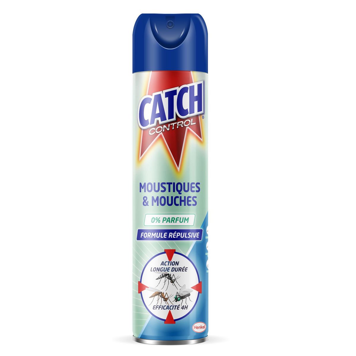 CATCH CONTROL Moustiques et Mouches agit efficacement* contre les moustiques, moustiques tigres et mouches grâce à sa formule exclusive. Avec sa formule au pyrèthre, 0% parfum et 0% insecticide, notre aérosol CATCH CONTROL vous garantit une protection longue durée.
