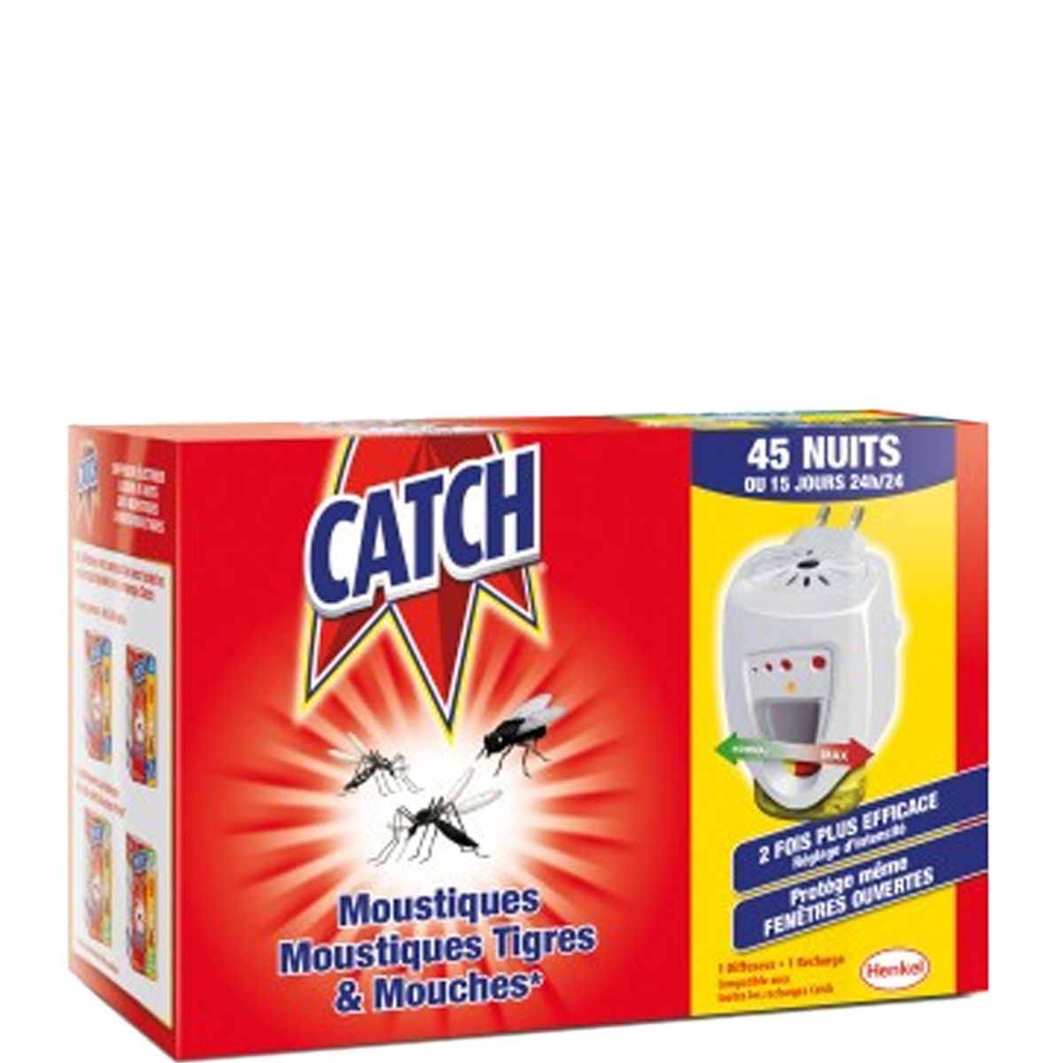 2 fois plus efficace : Réglage d'intensité. Protège même les fenêtres ouvertes. Compatible avec toutes les recharges CATCH CATCH - Diffuseur Électrique Mouches & Moustiques - 1 diffuseur + 1 recharge