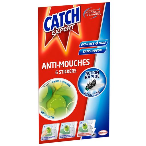 Étape 1 : Enlever le film protecteur. Étape 2 : Décoller le sticker Anti-Mouches de son support. Étape 3 : Coller le sticker dans un coin ensoleillé de la vitre, hors de la portée des enfants. Produit dangereux, respecter les précautions d'emploi. Utiliser les biocides avec prudence. Avant utilisation, lire l'étiquette et les informations concernant le produit.