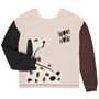- Manches longues, manche droite couleur noir, manche gauche couleur marron