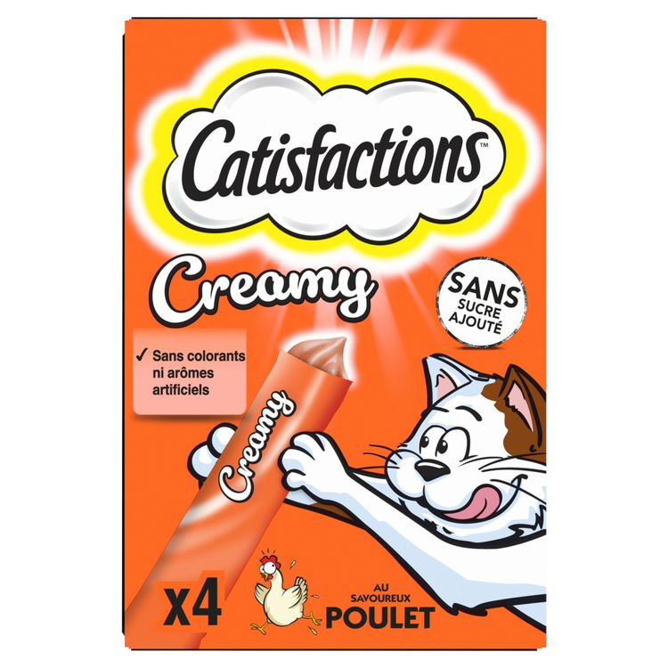 Aliment complémentaire pour chats adultes et pour chatons de plus de 8 semaines. Avec CATISFACTIONS™ Creamy, cultivez l'enthousiasme de votre chat ! Une façon appétissante de profiter de la pause récompense, et avec notre Mega Pack Creamy, il peut profiter de toutes ses variétés préférées avec le goût succulent et crémeux du poulet.