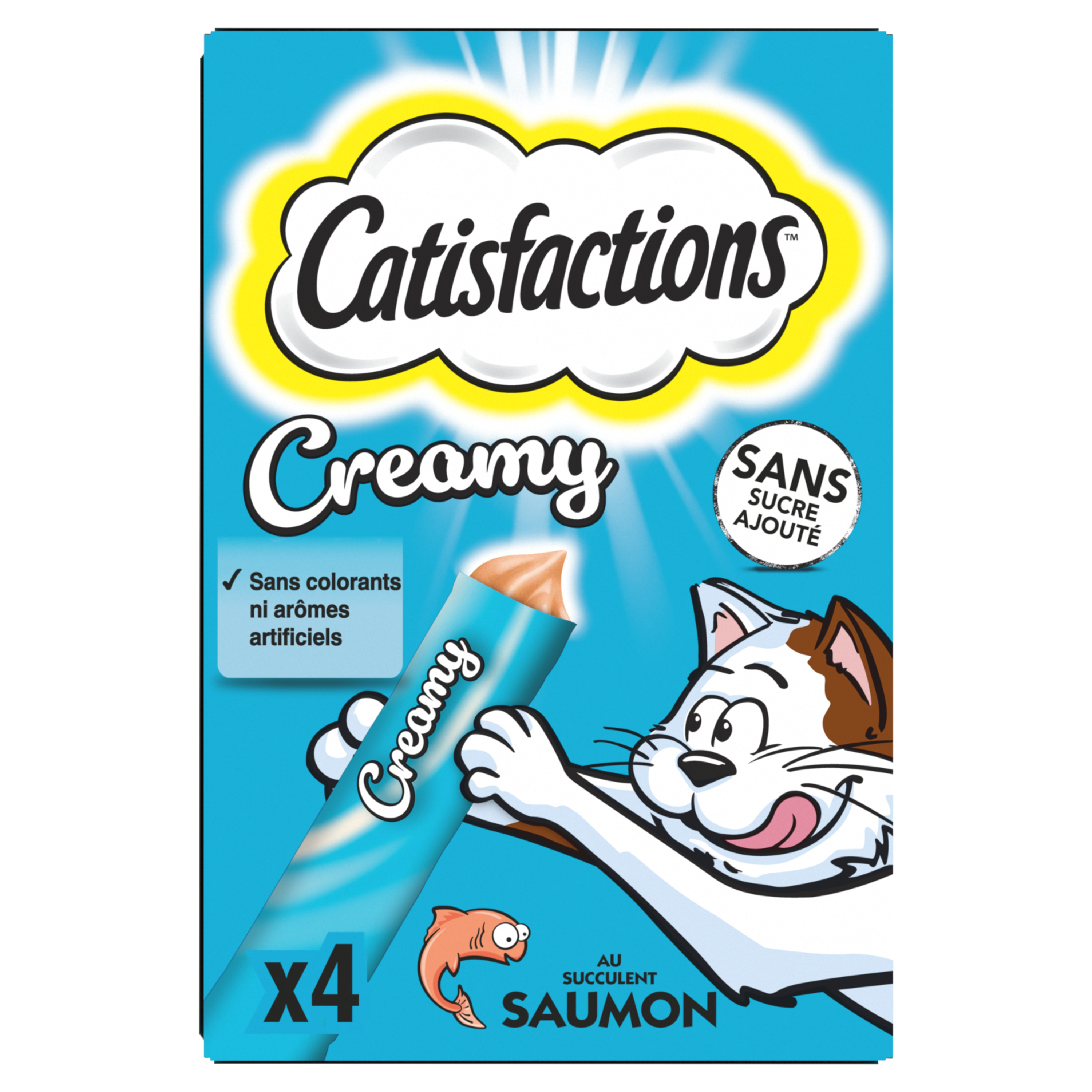 Aliment complémentaire pour chats adultes et pour chatons de plus de 8 semaines. Avec CATISFACTIONS™ Creamy, cultivez l'enthousiasme de votre chat ! Une façon appétissante de profiter de la pause récompense, et avec notre Mega Pack Creamy, il peut profiter de toutes ses variétés préférées avec le goût succulent et crémeux du saumon.