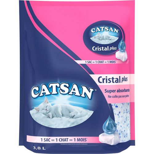 Litière pour chats aux cristaux de silice qui garantit un mois d'hygiène. La litière pour chat Catsan® Cristal Plus est constituée de cristaux de silice super absorbants qui capturent les liquides, ne laissant aucune place au développement des mauvaises odeurs. Grâce au pouvoir super absorbant des cristaux de silice, le changement de la totalité du bac de litière ne se fait plus qu’une fois par mois. La litière pour chat Catsan® Cristal Plus est disponible en format sac de 3,8L.