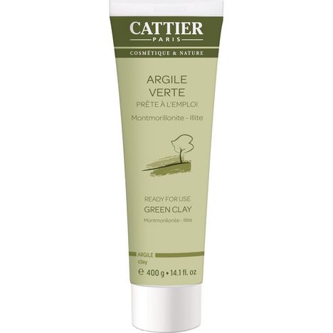 Véritable substance vivante dotée d'une intelligence naturelle, l'argile se distingue par ses propriétés d'absorption, d'adsorption et d'action qui lui permettent d'échanger les impuretés et toxines absorbées contre des minéraux. L'Argile Verte Prête à l'Emploi Cattier, extraite en France, a été rigoureusement sélectionnée pour son incomparable qualité. Ses propriétés ont été exaltées par l'action du soleil. Elle est traditionnellement utilisée en masques et cataplasmes. Absorbante, purifiante et régénérante, elle est particulièrement bien adaptée au soin des peaux mixtes à grasses. Elle absorbe et régule l'excès de sébum, élimine les impuretés, revitalise la peau et favorise le renouvellement cellulaire. Elle est également adoucissante.