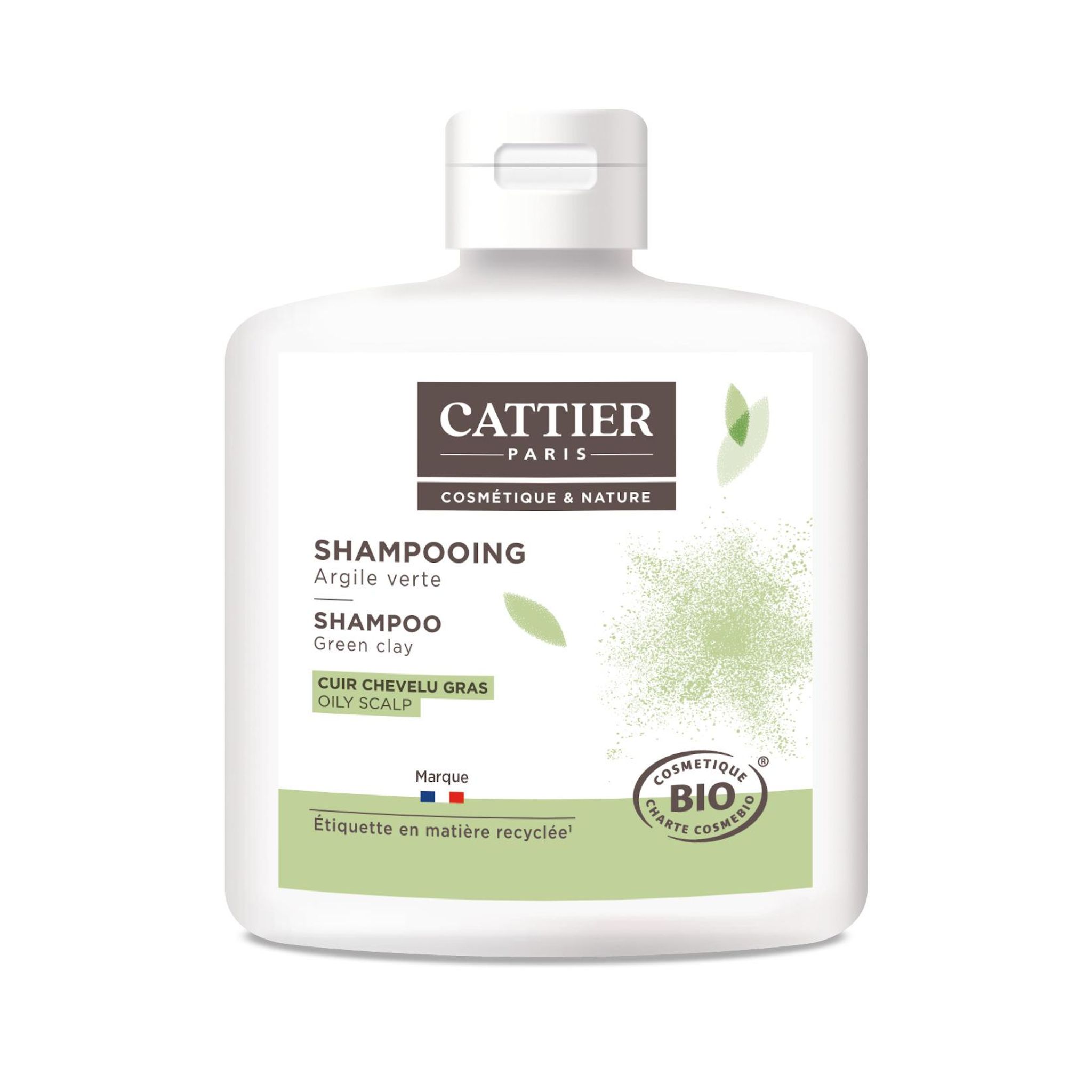 Le shampooing Cattier à l'argile verte et aux huiles essentielles purifie le cuir chevelu grâce aux vertus normalisantes de l'argile verte qui absorbe l'excès de sébum. Riche en protéines de blé, il nourrit et fortifie les cheveux dès la racine et facilite leur démêlage.