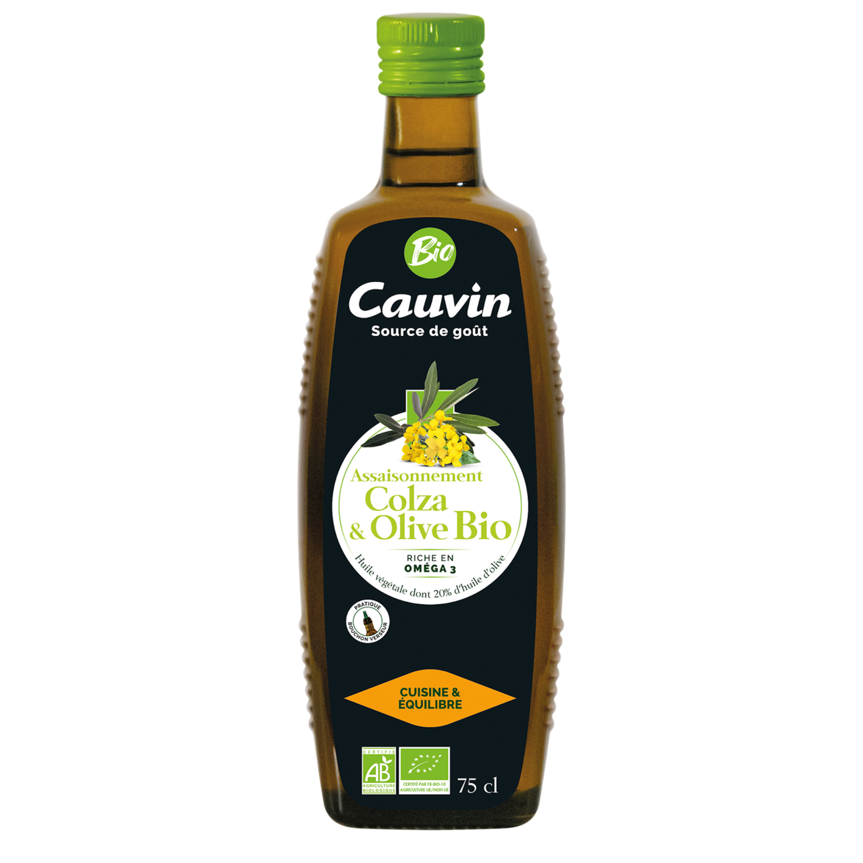 Ingrédients : HUILE DE COLZA BIO DESODORISE ET HUILE D'OLIVE VIERGE EXTRA BIO
