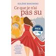 Quand le drame rencontre la lumière... Tout sépare Hélène et Rachel. Elles ne se connaissent pas et n'auraient jamais dû se croiser. Mais l'enterrement de Paul, célèbre écrivain, les réunit brutalement. Sans le savoir, elles ont aimé le même homme. Entre elles, d'abord, la jalousie. Puis peu à peu l'incompréhension laisse place à ce qui relie. Leur histoire ne dure qu'une journée et une nuit. Vingt-quatre heures dans la vie de deux femmes et la promesse, au bout, d'un nouveau départ. Roman du grand amour et de la liberté, Ce que je n'ai pas su dévoile avec une délicatesse infinie les mystères d'un homme secret et le fabuleux pouvoir de la réconciliation.