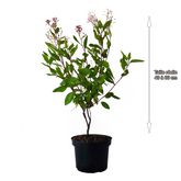 La Céanothe Marie-Simon est un arbuste touffu à croissance moyenne pouvant atteindre 1 m à 1.5 m de haut. Son feuillage caduc est vert clair, ses feuilles ovales et dentées sont portées par de fins rameaux de couleur pourpre. Son feuillage peut être semi-persistant voire caduc selon les régions. Sa floraison en panicules rose clair de 5 à 10 cm s'étale de juin à septembre. Une exposition ensoleillée est recommandée pour enrichir sa floraison. Bien que souvent utilisé en massifs et haies libres, cet arbuste peut également être placé en isolé. En Mars, une taille sera pratiquée afin que l'arbuste puisse s'étoffer.
