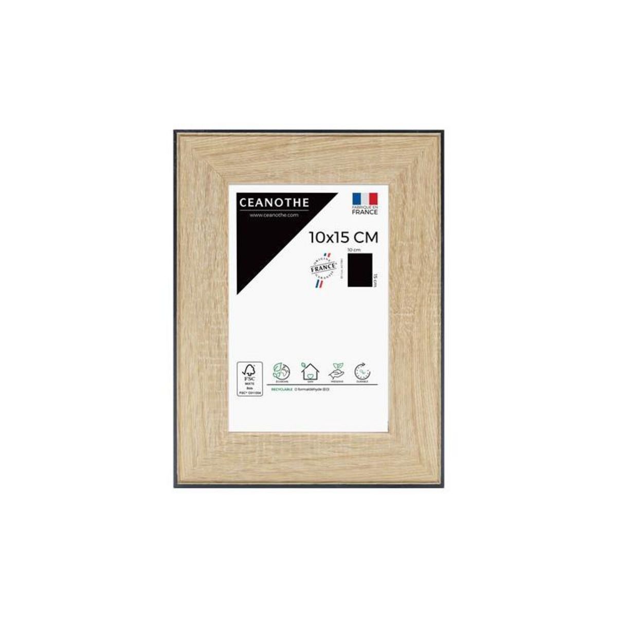 Le cadre photo Ceanothe Newton 10 x 15 cm est un modèle contemporain chic, conçu pour ajouter une touche d'élégance à votre décoration intérieure. Fabriqué en France, il combine une baguette de couleur bois avec une finition noire, offrant un style unique et raffiné. Ce cadre est idéal pour mettre en valeur vos photos préférées tout en respectant l'environnement grâce à son matériau recyclé.