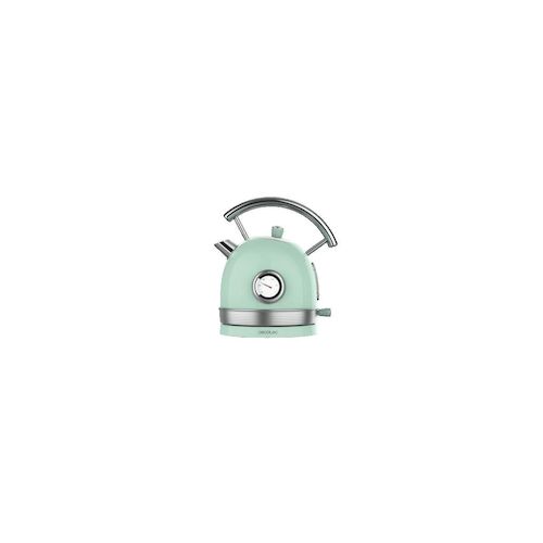 Découvrez la bouilloire électrique Cecotec ThermoSense 420, d'une puissance de 2200 W qui permet un chauffage rapide. Dotée d'une capacité de 1,8 litre, elle peut préparer jusqu'à 8 tasses de thé environ. Son design vintage et élégant en vert clair apporte une touche esthétique à votre cuisine. Elle