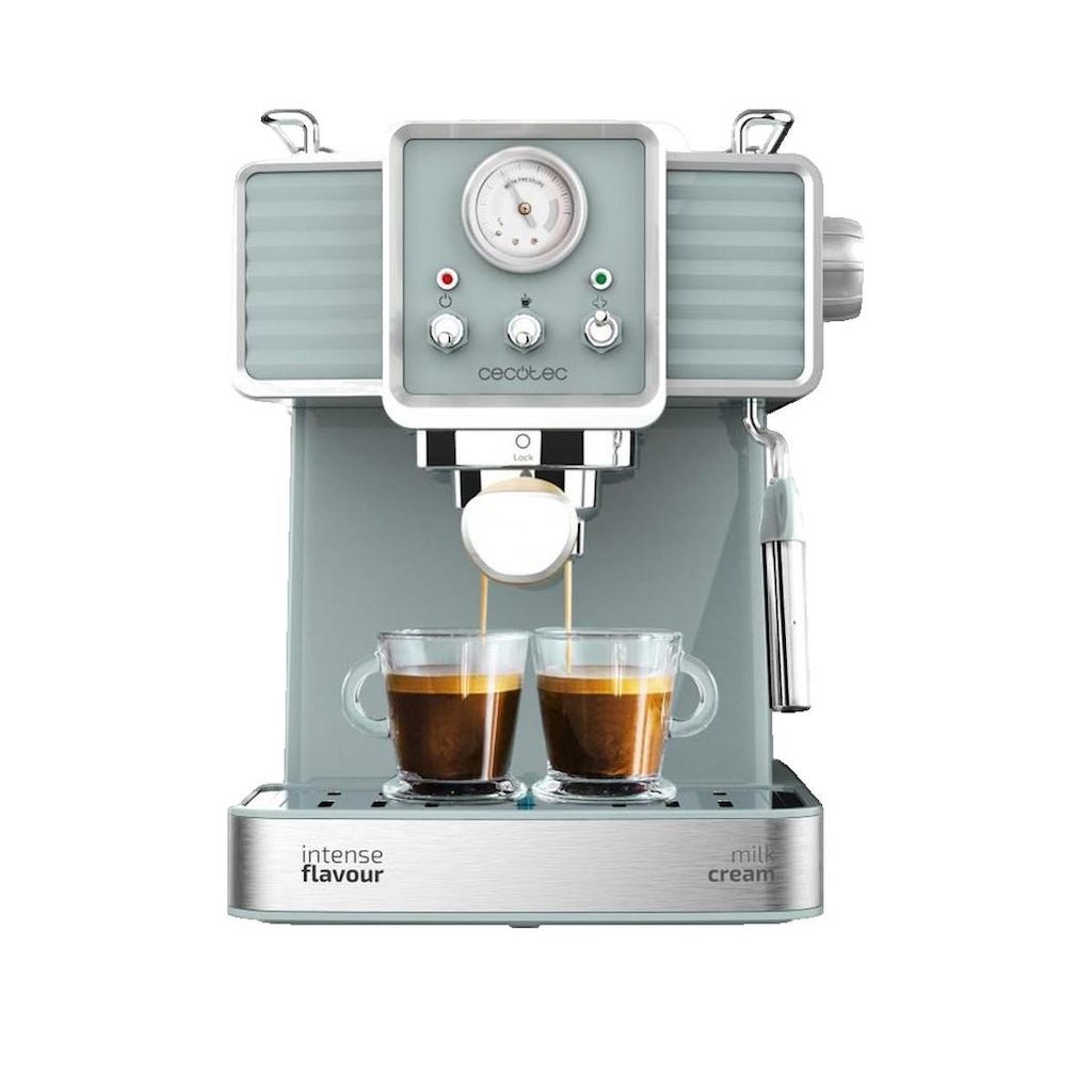 Découvrez la cafetière Power Espresso Tradizionale de Cecotec, une machine à expresso manuelle qui combine design vintage et technologie moderne. Dotée d'une puissance de 1350 W et d'une pression de 20 bars, elle permet de préparer facilement des espressos et cappuccinos de qualité. Faite en acier i