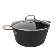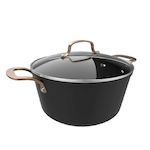 La casserole moderne de cecotec, d'un diamètre de 28 cm, est fabriquée en aluminium forgé pour une meilleure durabilité. Elle offre une capacité généreuse de 7,1 litres, idéale pour cuisiner de grandes portions. Son revêtement antiadhésif Platinum Plus Teflon® sans PFOA garantit une cuisson facile et saine. Convient à tous types de cuisinières, y compris l'induction. La casserole est équipée d'un couvercle en verre trempé avec soupape pour libérer la pression. Les poignées en acier inoxydable avec coloris or rose assurent une manipulation confortable et élégante. Compatible lave-vaisselle et utilisable au four jusqu'à 230 °C sans son couvercle, ce produit allie design contemporain noir et or rose à une grande fonctionnalité.