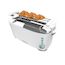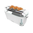 Ce grille-pain Cecotec puissant de 1350 W est conçu pour toaster jusqu'à quatre tranches de pain avec ses deux longs slots. Il dispose d'une fonction d'arrêt automatique et d'un mécanisme de remontée pour éjecter les tranches une fois le grillage terminé. Son design élégant en acier inoxydable s'intègre parfaitement à tout décor de cuisine. Ce grille-pain propose également des fonctions préréglées pour réchauffer et décongeler les aliments, ainsi qu'un bac à miettes amovible permettant un nettoyage facile. Sa base antidérapante assure une bonne stabilité lors de son utilisation, et il pèse environ 1,9 kilogramme.