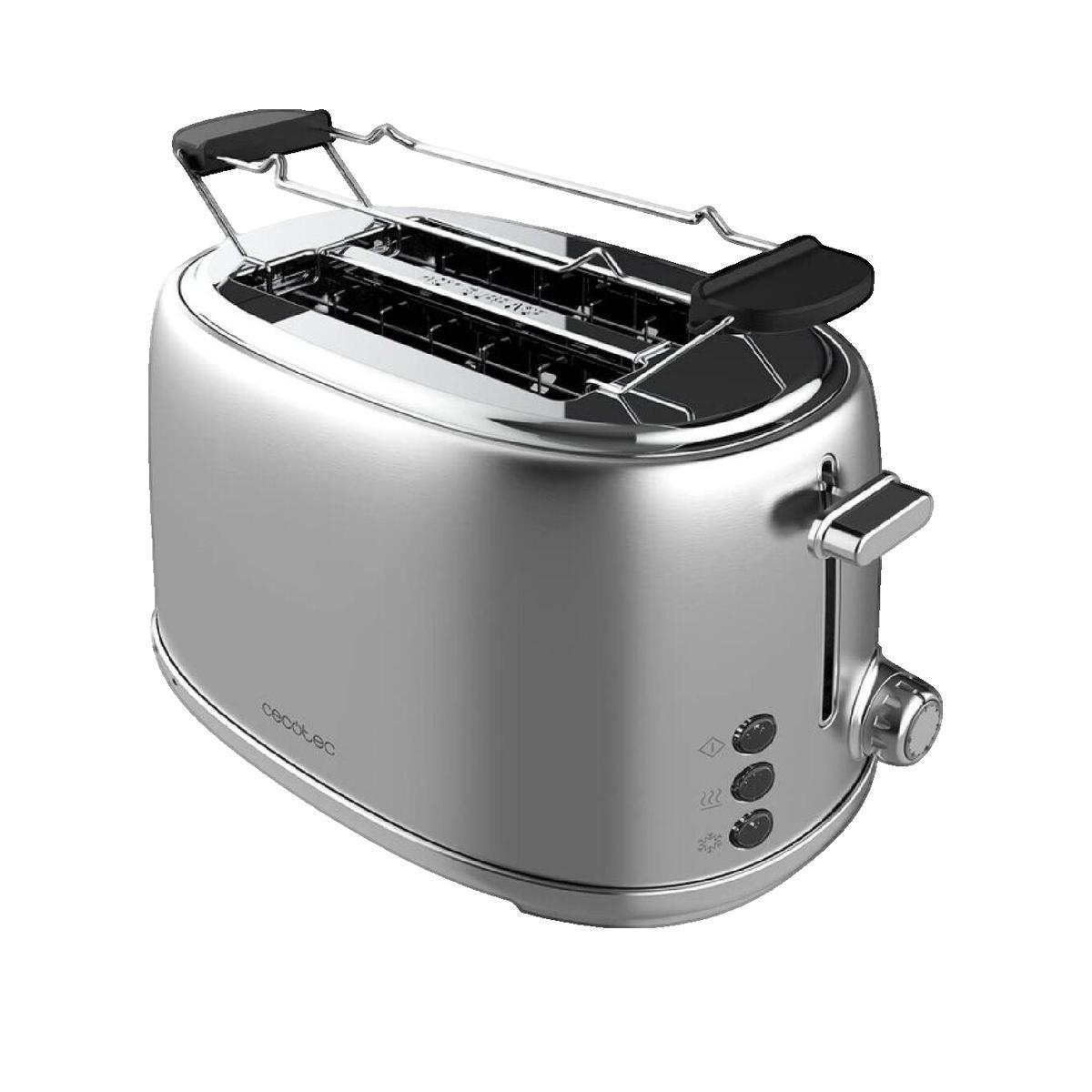 Découvrez le grille-pain Cecotec en acier inoxydable, conçu pour griller parfaitement pain et viennoiseries. Il possède deux fentes larges, une puissance de 980 W et six niveaux de brunissage pour un toast adapté à vos préférences. Son design rétro élégant s'intègre harmonieusement dans votre cuisin
