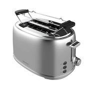 Découvrez le grille-pain Cecotec en acier inoxydable, conçu pour griller parfaitement pain et viennoiseries. Il possède deux fentes larges, une puissance de 980 W et six niveaux de brunissage pour un toast adapté à vos préférences. Son design rétro élégant s'intègre harmonieusement dans votre cuisine. L'appareil inclut un mécanisme de remontée automatique (pop-up) et un plateau ramasse-miettes amovible pour faciliter le nettoyage. Ce grille-pain allie efficacité et esthétique pour devenir un accessoire indispensable de votre cuisine.