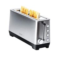 Le grille-pain vertical haute performance Cecotec dispose d'une puissance de 1100W. Il est équipé d'une fente extra-large qui permet de griller deux tranches de pain jusqu'à 3,8 cm d'épaisseur. Ce grille-pain offre des fonctions pratiques telles que le réchauffement, la décongélation, la cuisson bag