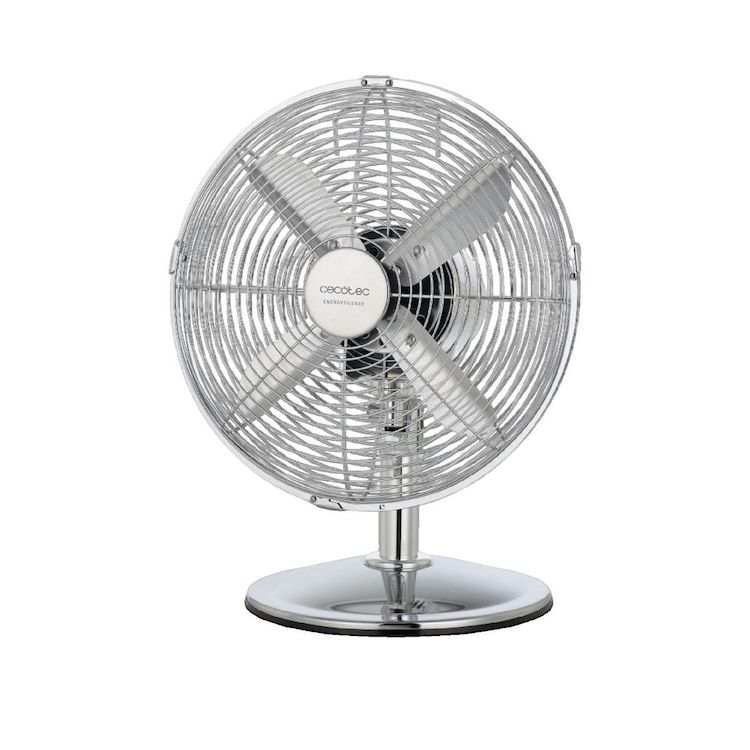 Le ventilateur EnergySilence 620 RetroDesk de Cecotec combine un design rétro élégant avec une performance efficace. Doté d'un moteur en cuivre de 40 W, il assure une puissance optimale tout en restant silencieux. Ce modèle possède une finition chromée dans une teinte argentée qui s'intègre parfaite