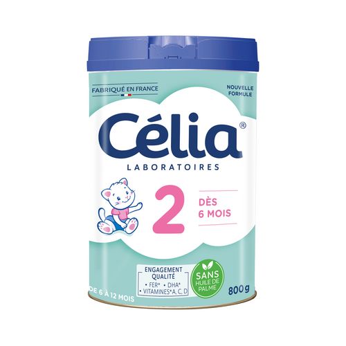 Les Experts des laboratoires Célia ont spécialement conçu cette formule en associant des lipides d’origines laitière et végétale. Les lipides d’origine laitière permettent d’exclure toute utilisation d’huile de palme. Toutes les formules Célia contiennent également du DHA*, un acide gras de la famille des oméga 3.Donner Célia 2ème âge à votre bébé jusqu'à ses 12 mois, c'est également lui apporter:-Des Oméga 3*-Du Fer*-De la VITAMINE D* et du CALCIUM*