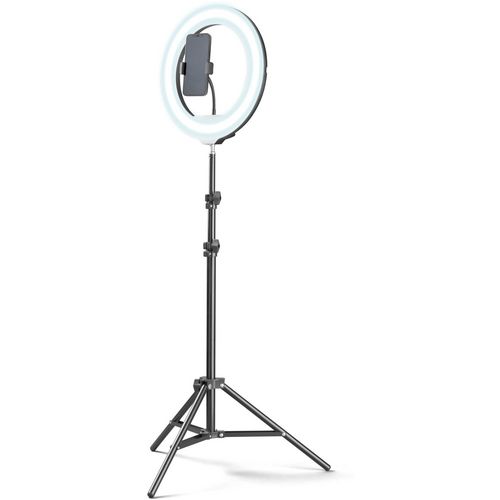 Anneau LED 13'' - Trépied extensible jusqu'à 1.60m - 3 modes d'éclairage - Support universel rotatif et flexible pour smartphone - Câble USB