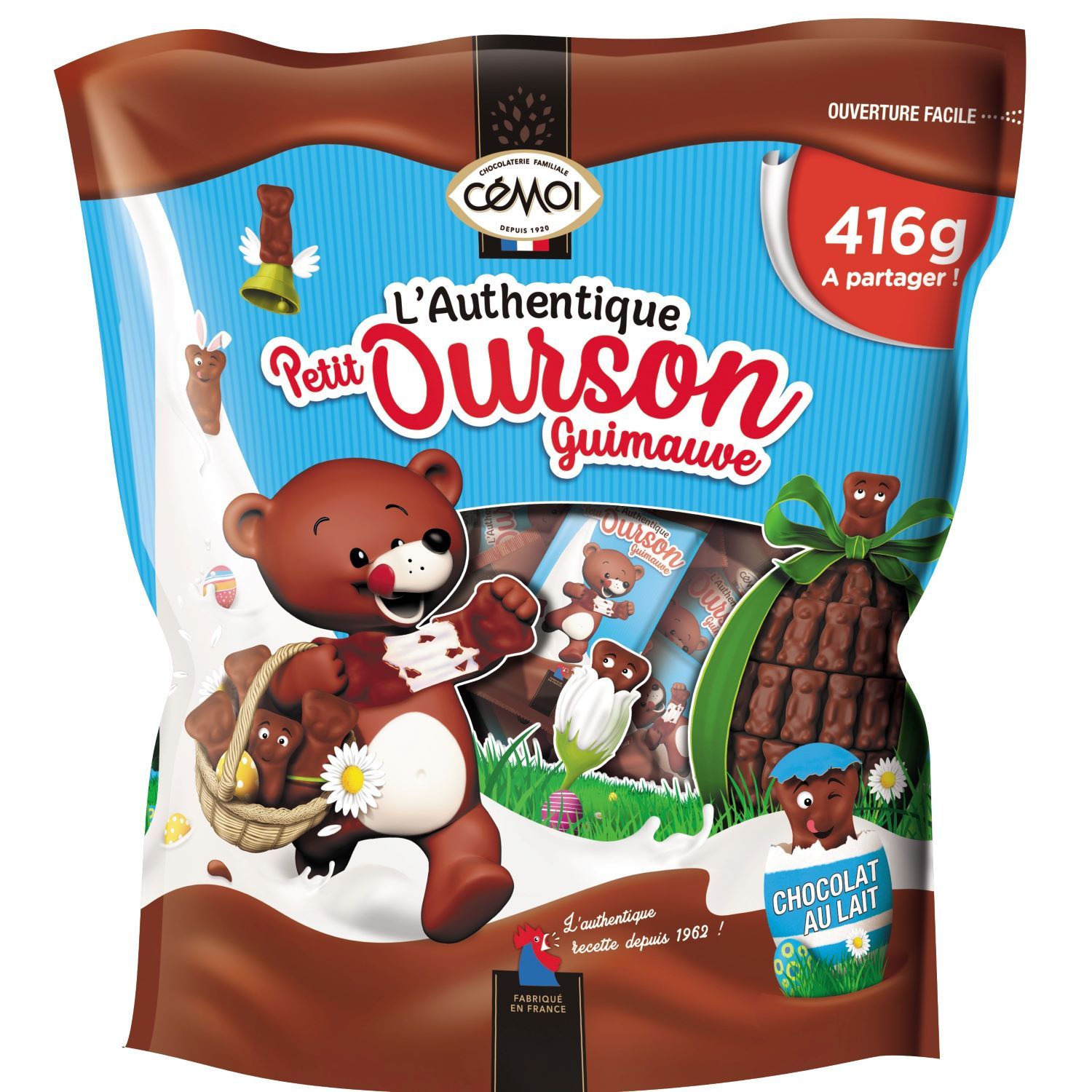 L'Authentique Petit Ourson Guimauve, votre complice pour des moments de gourmandise à Pâques. Succombez à son tendre cœur moelleux et sa coque au bon chocolat au lait.