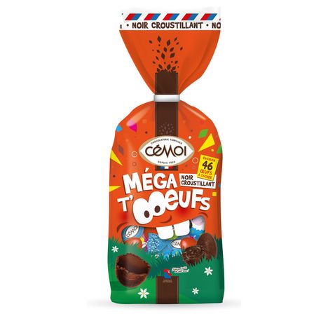BONBONS DE CHOCOLAT FOURRAGE AU PRALINÉ ET AUX CÉRÉALES CROUSTILLANTES Ingrédients : Chocolat NOIR (sucre, pâte de cacao, beurre de cacao, BEURRE pâtissier, émulsifiants: lécithines, arôme naturel de vanille), sucre, graisses végétales (palmiste, palme), praliné 9% (pâte de NOISETTES, sucre), LACTOSE, LACTOSERUM en poudre, céréales croustillantes 2% (farine de riz, farine de BLE, gluten de BLE,sucre, malt de BLE, émulsifiant : lécithines, sel), cacao maigre en poudre, huile de tournesol et/ou coĺza, émulsifiant : lécithines, arôme naturel. Chocolat noir: 45% de cacao minimum. Peut contenir d'autres FRUITS A COQUE. OEUFS EN CHOCOLAT NOIR SUPÉRIEUR AUX CÉRÉALES CROUSTILLANTES (CACAO : 49% MINIMUM) Ingrédients: sucre, pâte de cacao, beurre de cacao, céréales croustillantes 5% (farine de riz, farine de BLE, gluten de BLE, sucre, malt de BLE, émulsifiant : lécithines, sel), BEURRE pâtissier, émulsifiant : lécithines, arôme naturel de vanille.
