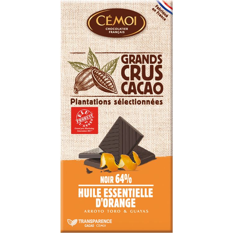 En dégustant ce chocolat laissez-vous emporter par le mariage intense et fruité d'un chocolat noir de caractère et de l'huile essentielle d'orange douce Tablette chocolat noir Equateur 64 % orange 100 g CEMOI