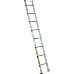 Échelle simple S 2m10- Confortable : barreaux de forme légèrement arrondie pour plus de confort aux pieds lors de la montée et de la descente.- Stable : patins chaussants nouvelle matière anti-glissement et antidérapage.- Intervalle barreaux : 280mm- Liaison performante montants/barreaux : 3 sertiss