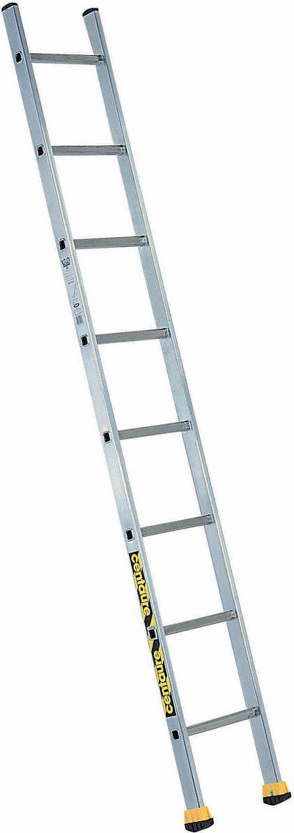 Échelle simple S 5m75- Confortable : barreaux de forme légèrement arrondie pour plus de confort aux pieds lors de la montée et de la descente.- Stable : patins chaussants nouvelle matière anti-glissement et antidérapage.- L'échelle simple est équipée d'un stabilisateur en aluminium avec des patins b
